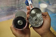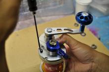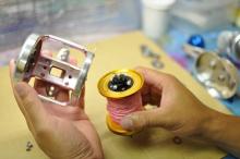 6)サイドプレート側も外し、ホソマッチョスプールを同じ手順で組み込みます。