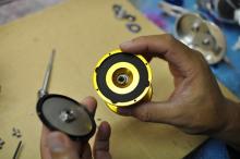1)プリセットドラグノブを外します。(バネがあるので注意)