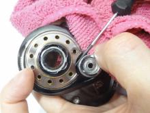 リールのボディにキズが付かないように、タオルやテーピングでドライバーの当たる部分を保護して下さい。