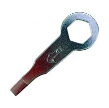 スパナ部分は BC シリーズのハンドルナットの付け外しに、柄の先端に設けられたマイナスドライバーはサイドプレートスクリュー、ロックプレートスクリュー、ドライブシャフトスクリューの付け外しにそれぞれ対応。