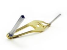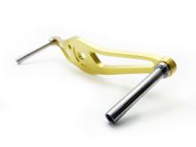 ノブ軸はステンレスより軽く、ジュラルミンより高剛性なチタン合金(Ti64)を採用。