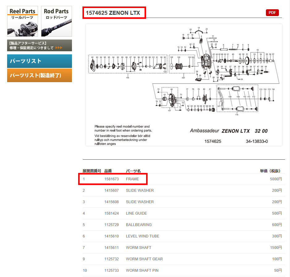 ・ダイワのHPで、修理対応専用・販売停止中・生産終了の部品。