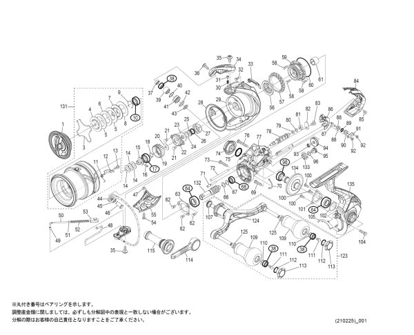 ・シマノ、ダイワのホームページの展開図で、部品番号・部品コードのない部品。