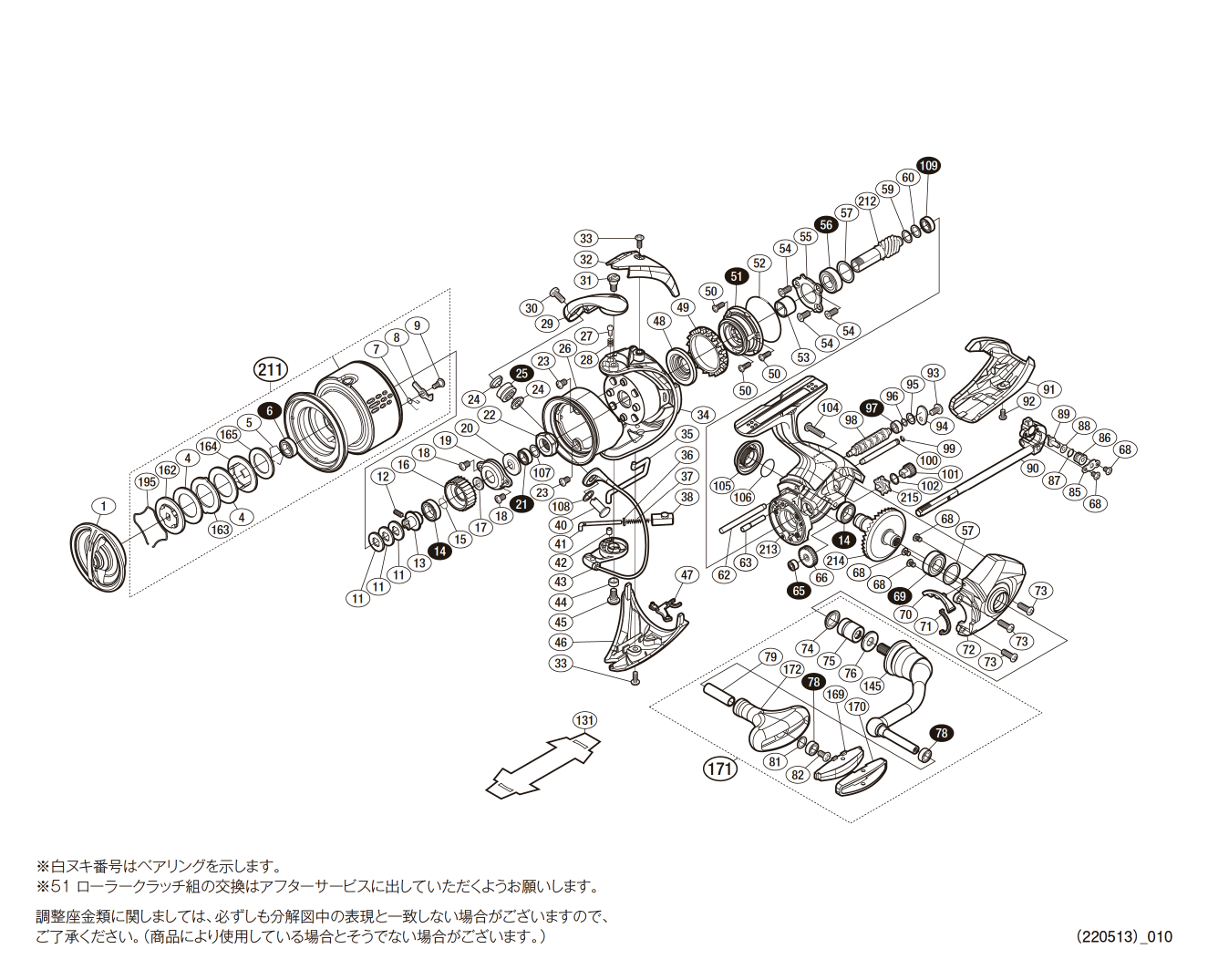・シマノ、ダイワのホームページの展開図で、部品番号・部品コードのない部品。
