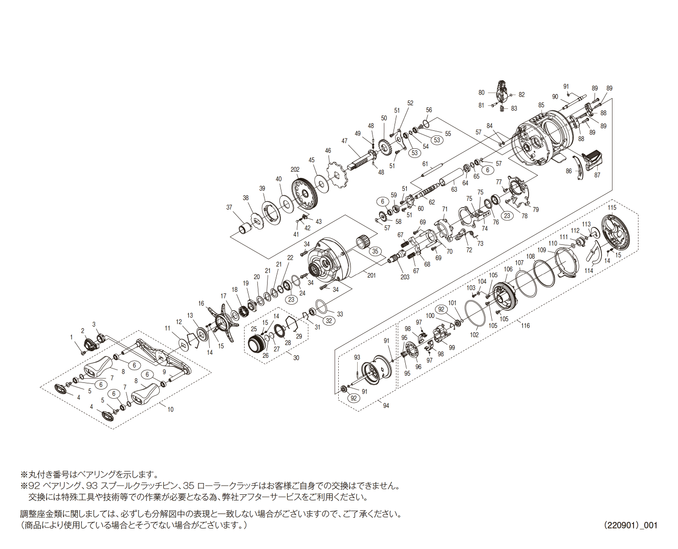 ・シマノ、ダイワのホームページの展開図で、部品番号・部品コードのない部品。