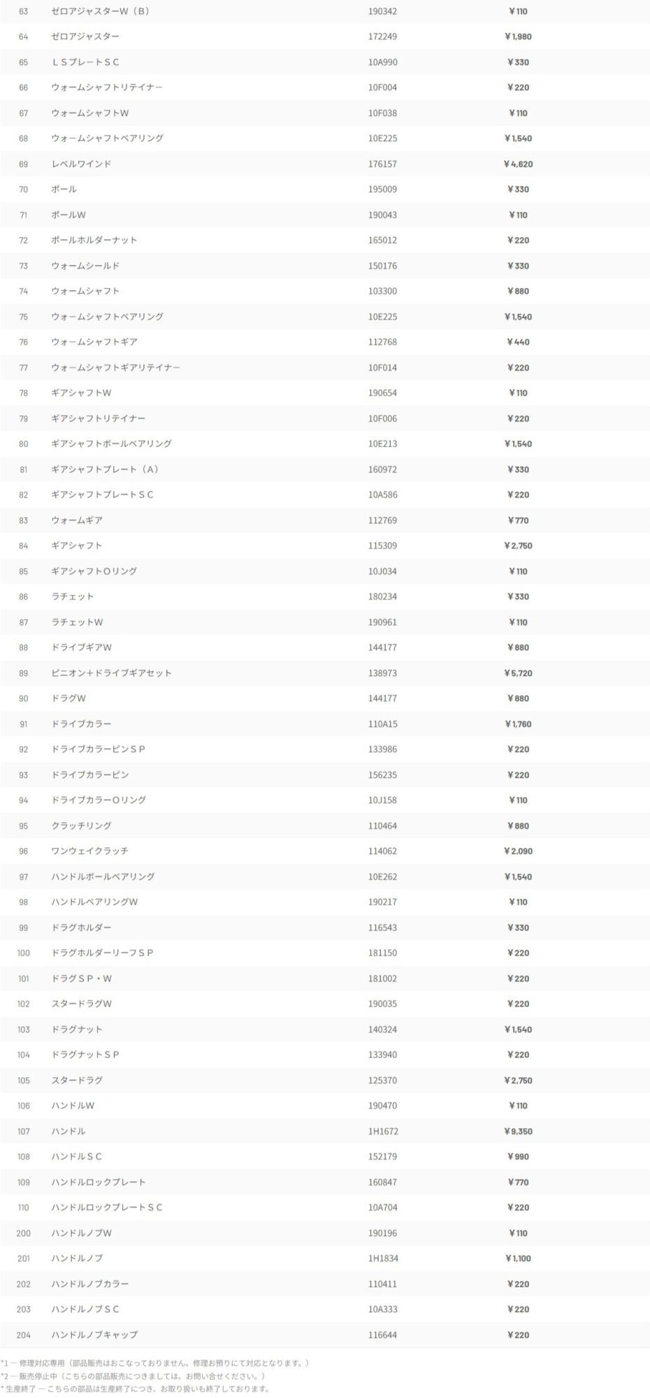 ・ダイワのHPで、修理対応専用・販売停止中・生産終了の部品。