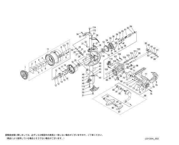 ・シマノ、ダイワのホームページの展開図で、部品番号・部品コードのない部品。