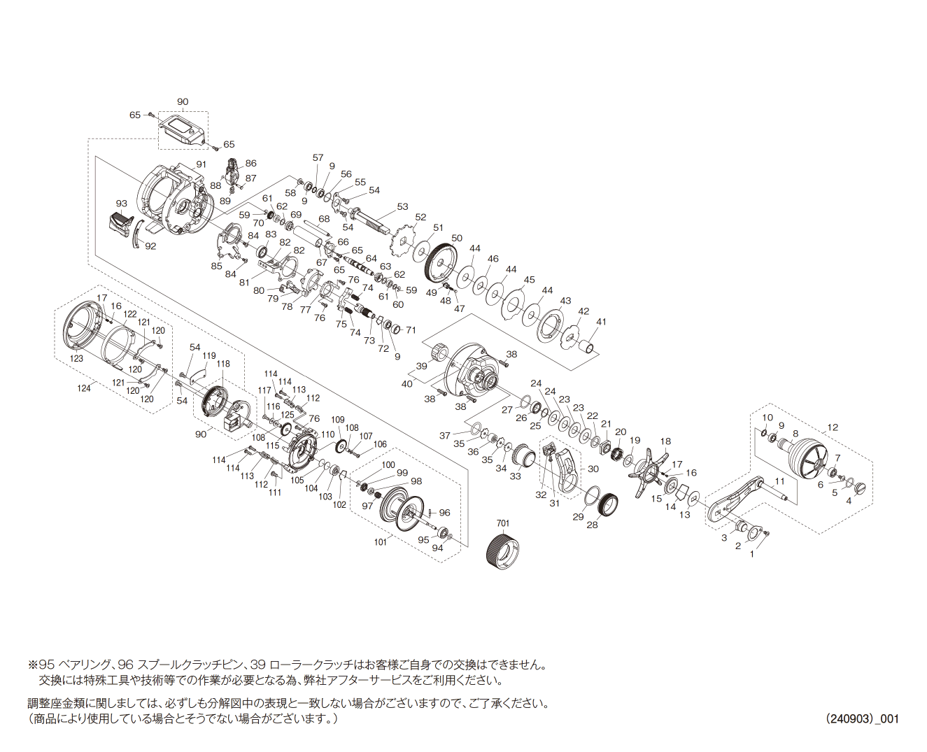 | リール部品展開図 |