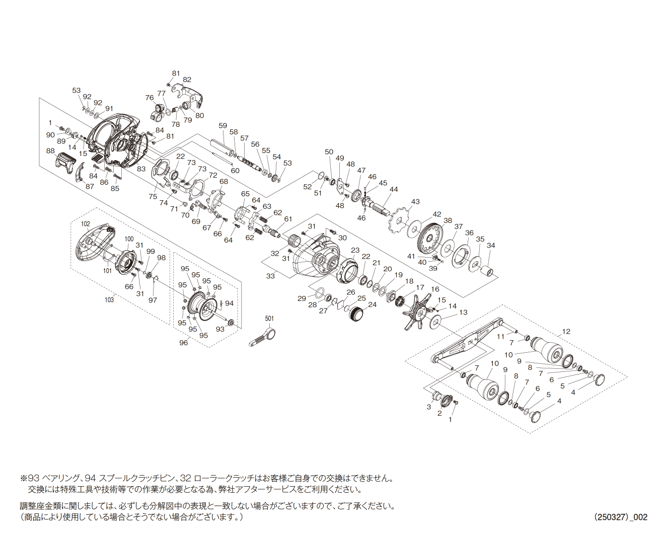 ・シマノ、ダイワのホームページの展開図で、部品番号・部品コードのない部品。