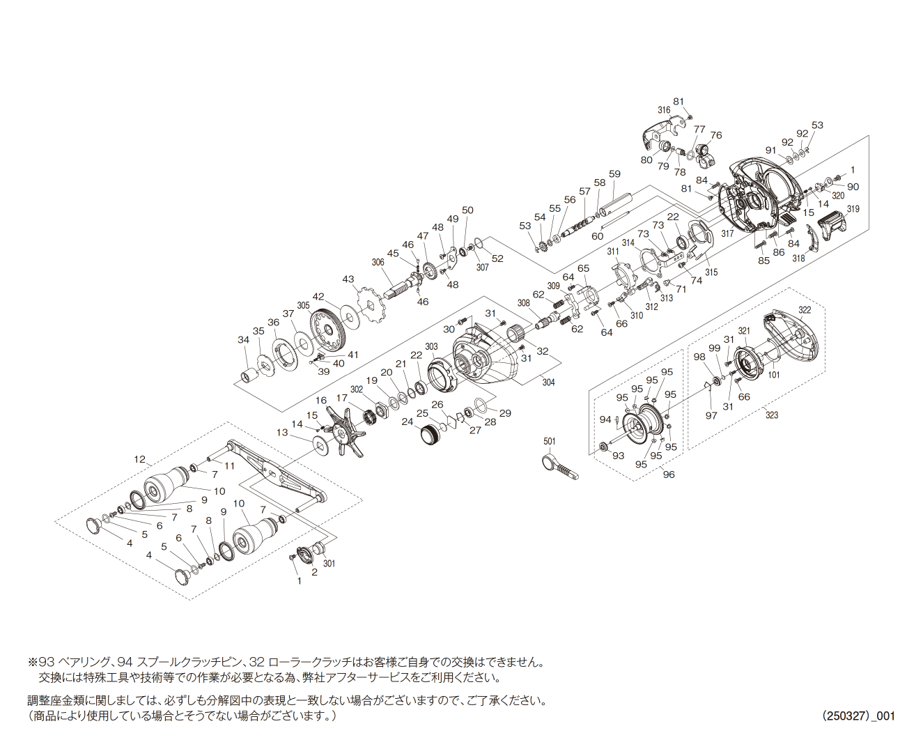 ・シマノ、ダイワのホームページの展開図で、部品番号・部品コードのない部品。