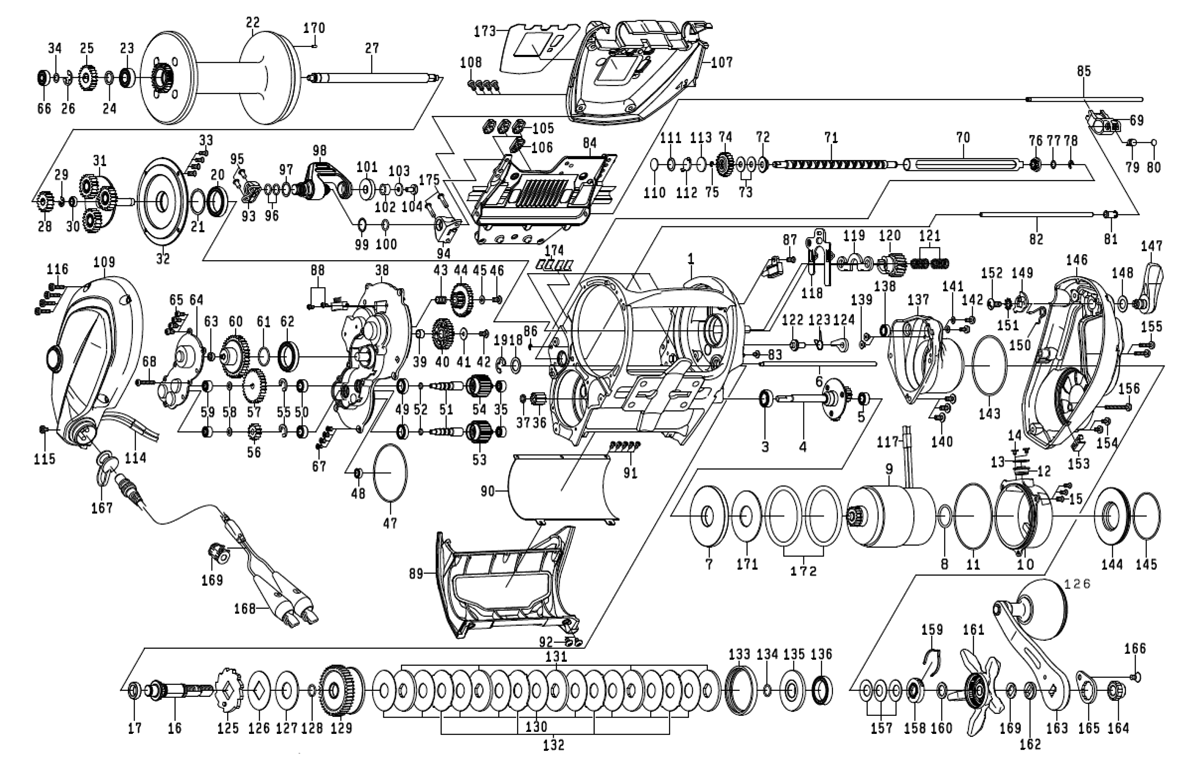 | リール部品展開図 |