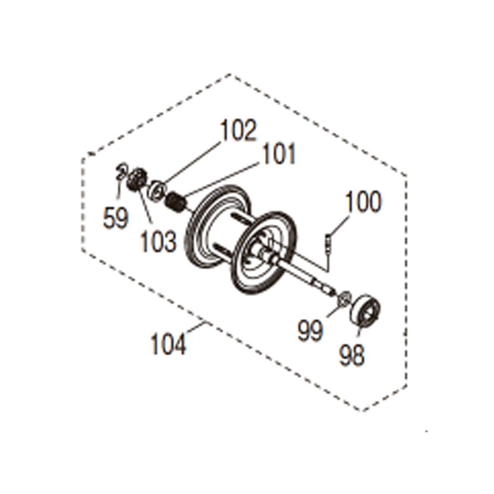 【シマノ純正お取り寄せパーツ:納期1ヶ月】23エンゲツ プレミアム 純正スプール(150PG, 151PG, 150HG, 151HG)商品コード:045430 104番 S Part No. 144X8 スプール組【中サイズ送料】