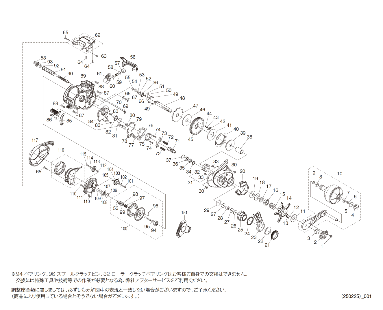 【シマノ純正お取り寄せパーツ:納期1ヶ月】25グラップラー CT 150XG 商品コード:048837