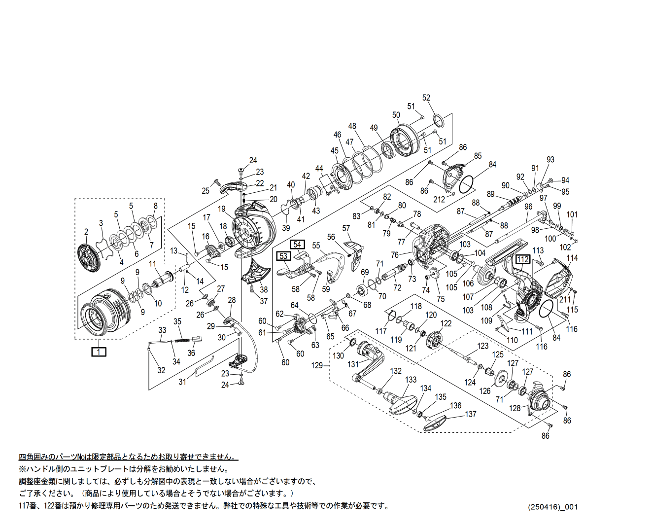 ・シマノ、ダイワのホームページの展開図で、部品番号・部品コードのない部品。
