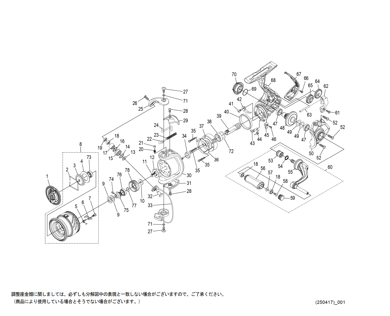 ・シマノ、ダイワのホームページの展開図で、部品番号・部品コードのない部品。