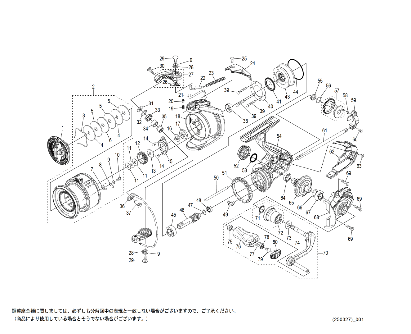 ・シマノ、ダイワのホームページの展開図で、部品番号・部品コードのない部品。