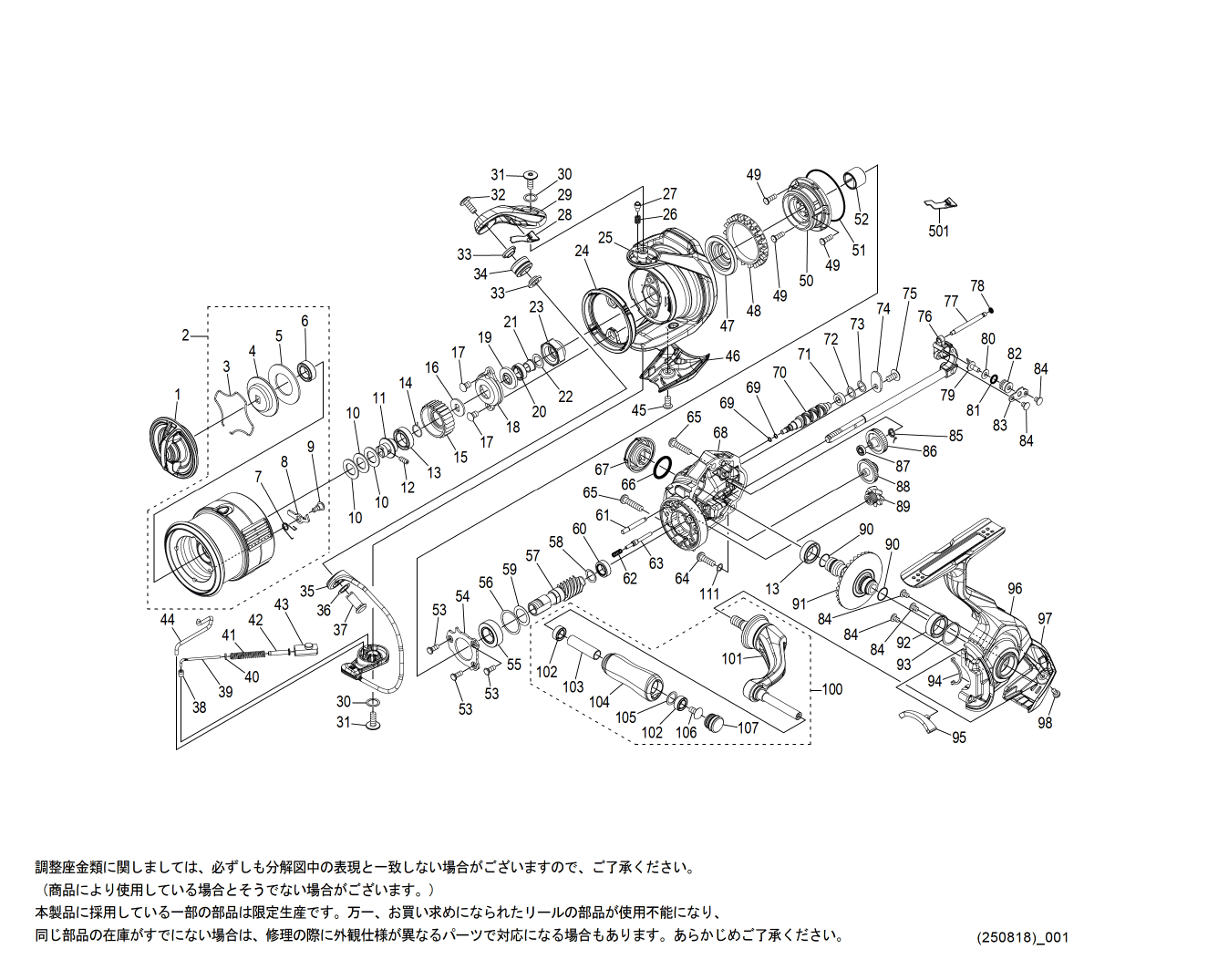 ・シマノ、ダイワのホームページの展開図で、部品番号・部品コードのない部品。