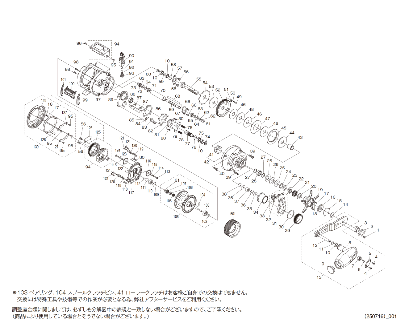 ・シマノ、ダイワのホームページの展開図で、部品番号・部品コードのない部品。