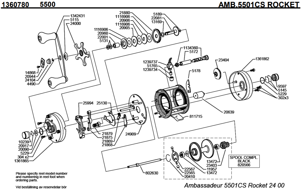 【アブ純正お取り寄せパーツ:納期1ヶ月】Ambassadeur 5501CS ROCKET 製品コード:1360780