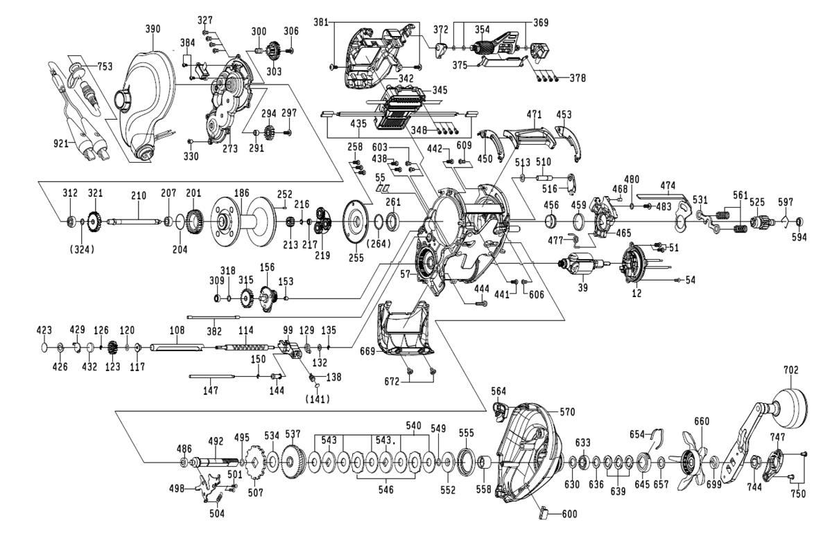 | リール部品展開図 |