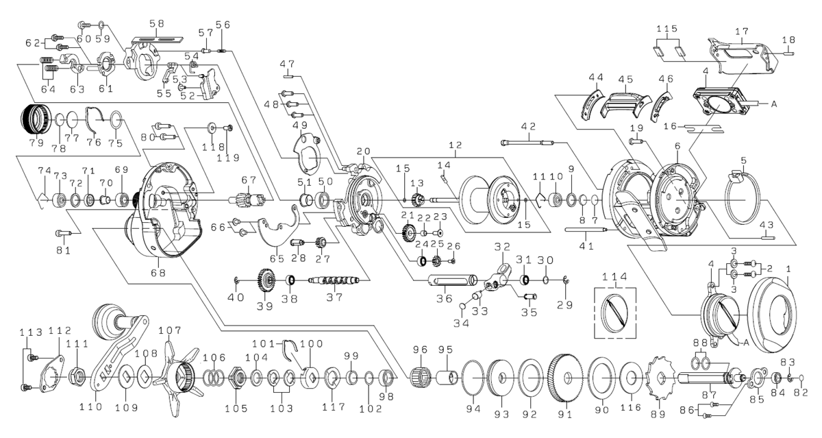 ※パーツリストのページは順次増やしていく予定ですが、まだリストが掲載されていないリールの部品をご希望の場合は、下記オーダーフォームより手入力でご注文下さい。