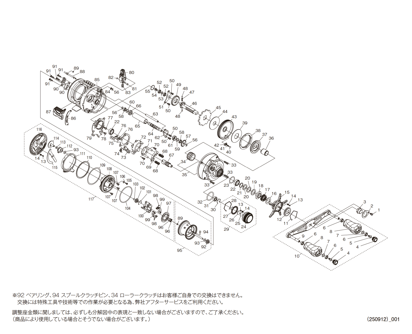 ・シマノ、ダイワのホームページの展開図で、部品番号・部品コードのない部品。