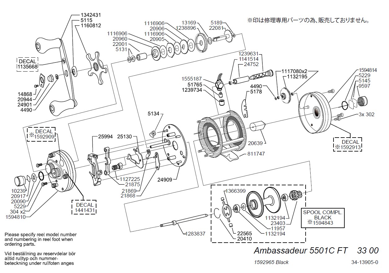 【アブ純正お取り寄せパーツ:納期1ヶ月】Ambassadeur 5501C Factory Tuned Black 製品コード:1592965