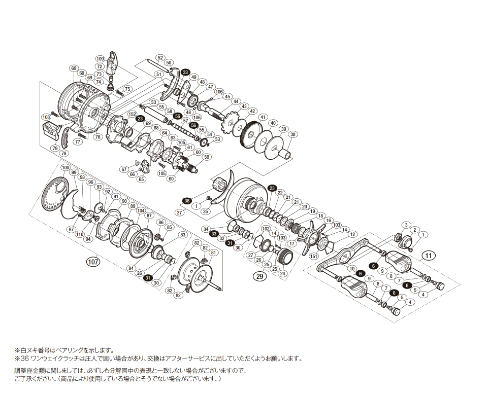 ・シマノ、ダイワのホームページの展開図で、部品番号・部品コードのない部品。
