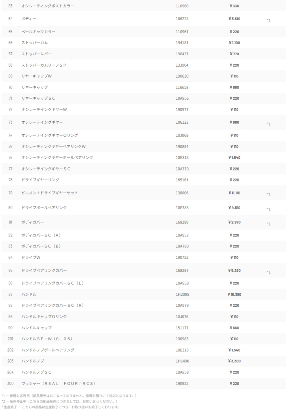 ・ダイワのHPで、修理対応専用・販売停止中・生産終了の部品。