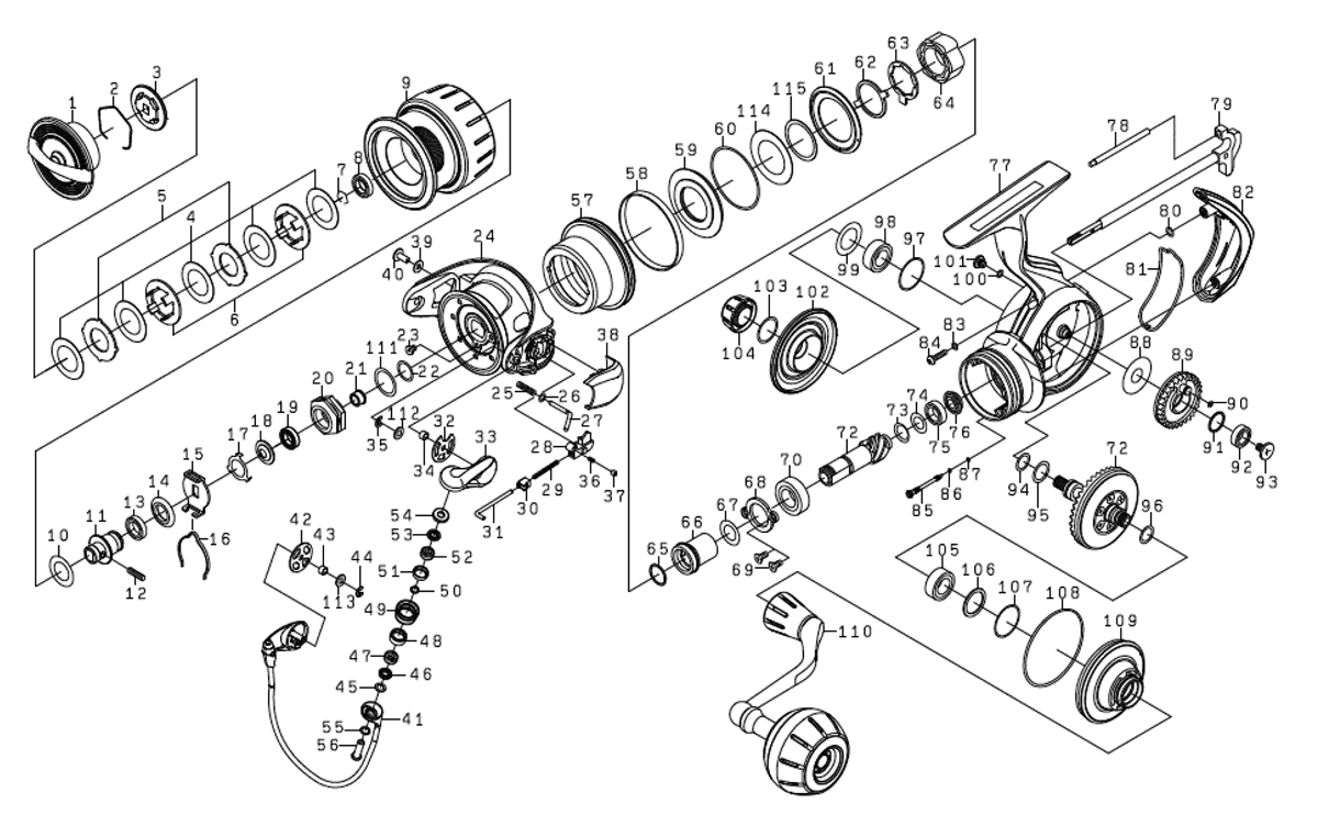 ・シマノ、ダイワのホームページの展開図で、部品番号・部品コードのない部品。