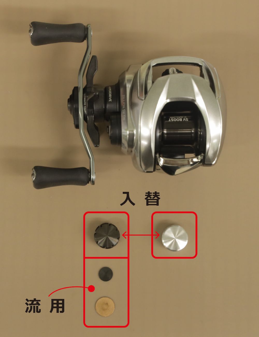 ※内部のワッシャーは流用し、メカニカルブレーキノブ本体のみを交換します。