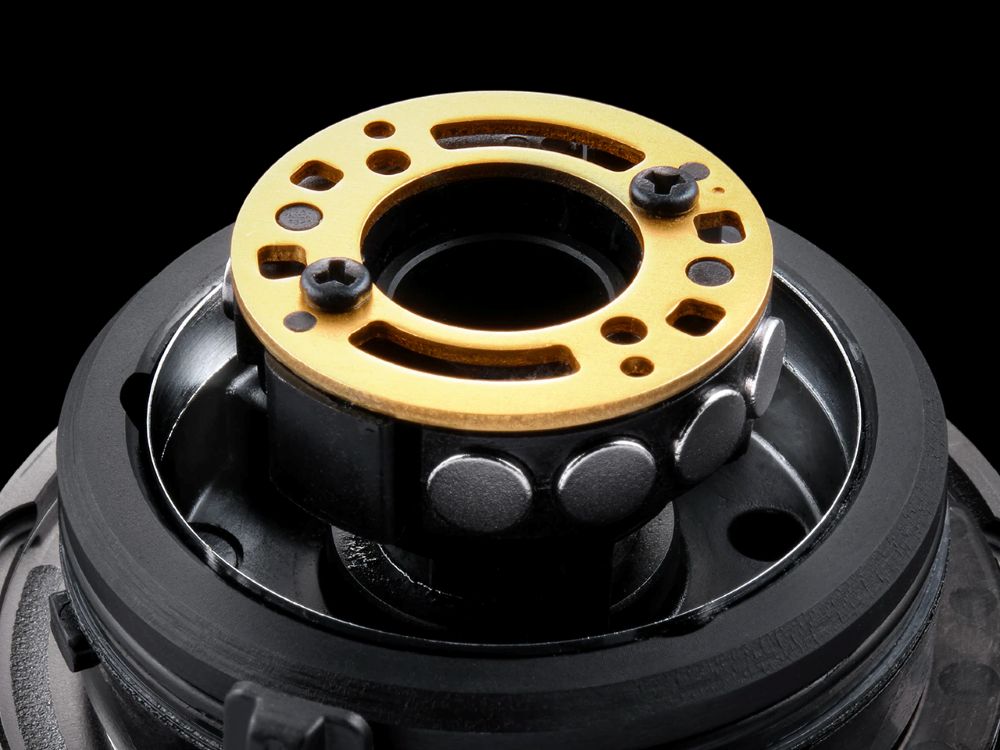 従来型よりブレーキユニットのストロークを大きく取ることが可能な設計、かつ磁性リングをさらに引き込める構造にすることで、ミニマムブレーキ時におけるスプールに与える磁力の影響を限りなくゼロに近づけます。