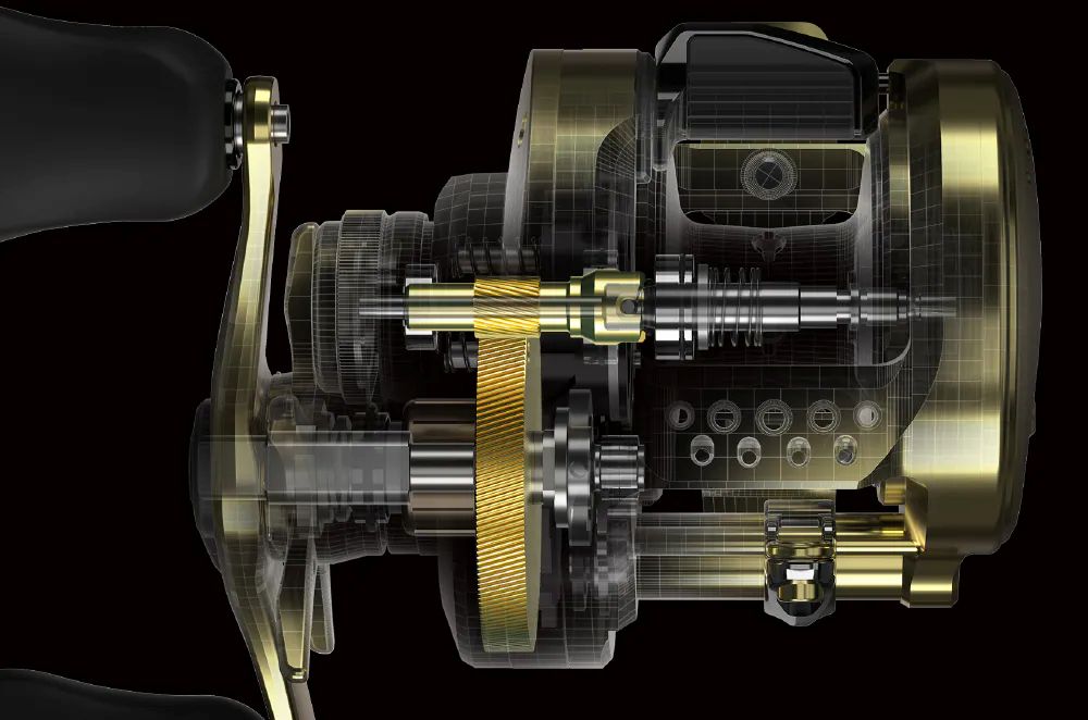 カルカッタコンクエストは、ソルト用ベイトリールで評価の高いインフィニティドライブをバスリールとして初めて搭載。