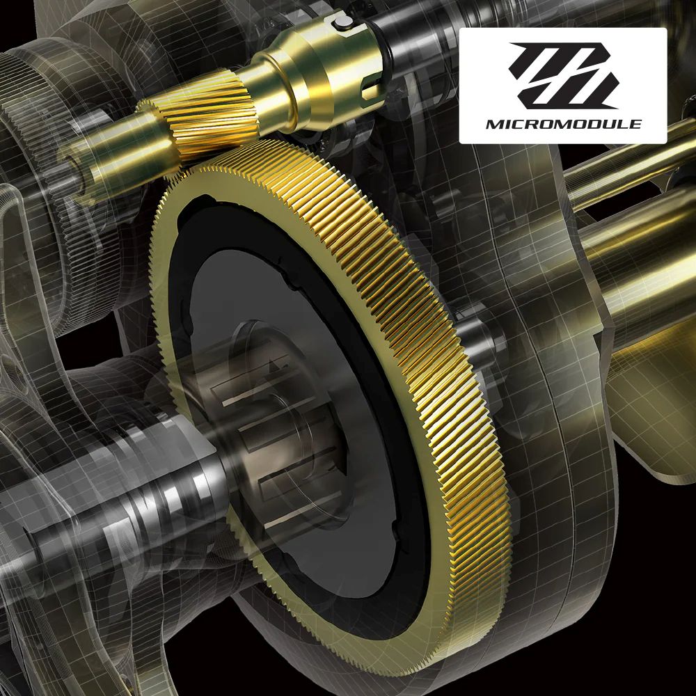 「マイクロモジュールギア」は、非常に小さな精密ギアと精巧なボディハウジングを組み合わせることで、これまでにない“シルキー”な巻きごこちを実現するギアシステムです。