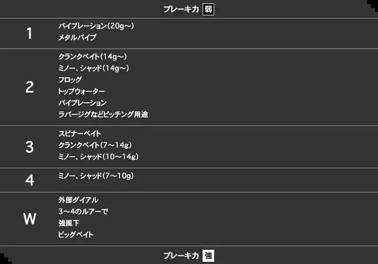 カルカッタ コンクエスト DC DCモード ルアー対応表