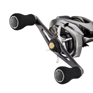 ダブルハンドル仕様にすることで、両端のハンドルノブが回転時のブレを抑え、より安定したリーリングが可能になります。