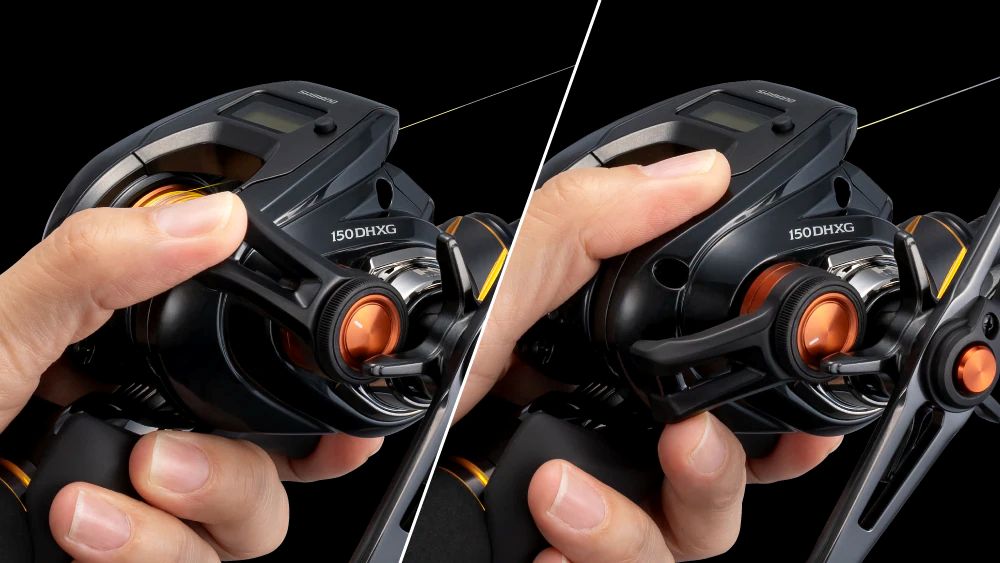 一方、これまでのフォールレバーは、フォールスピードにブレーキをかけてシャクると、リールを巻き上げる動作が重くなるという課題がありました。