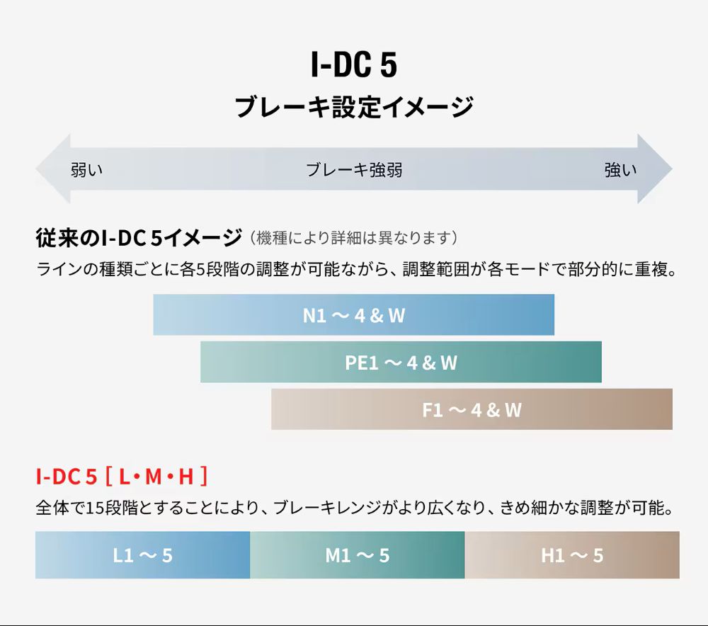 15段階のブレーキ力で、より繊細なコントロールを可能にする最新の I-DC 5
