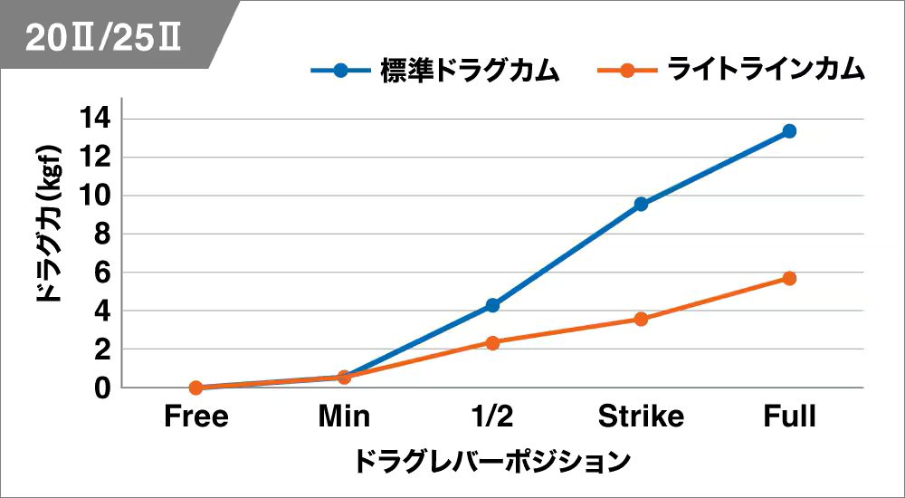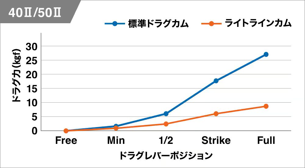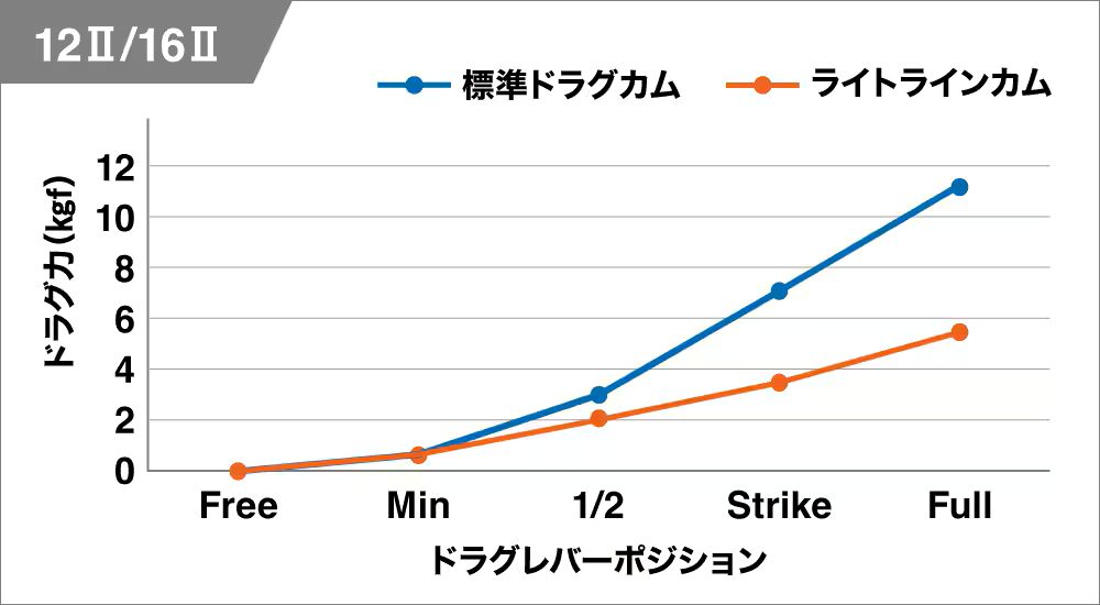 これを使用することで、同一レバーポジションにおけるドラグ値を標準カム使用時と比べて低く設定することができる。