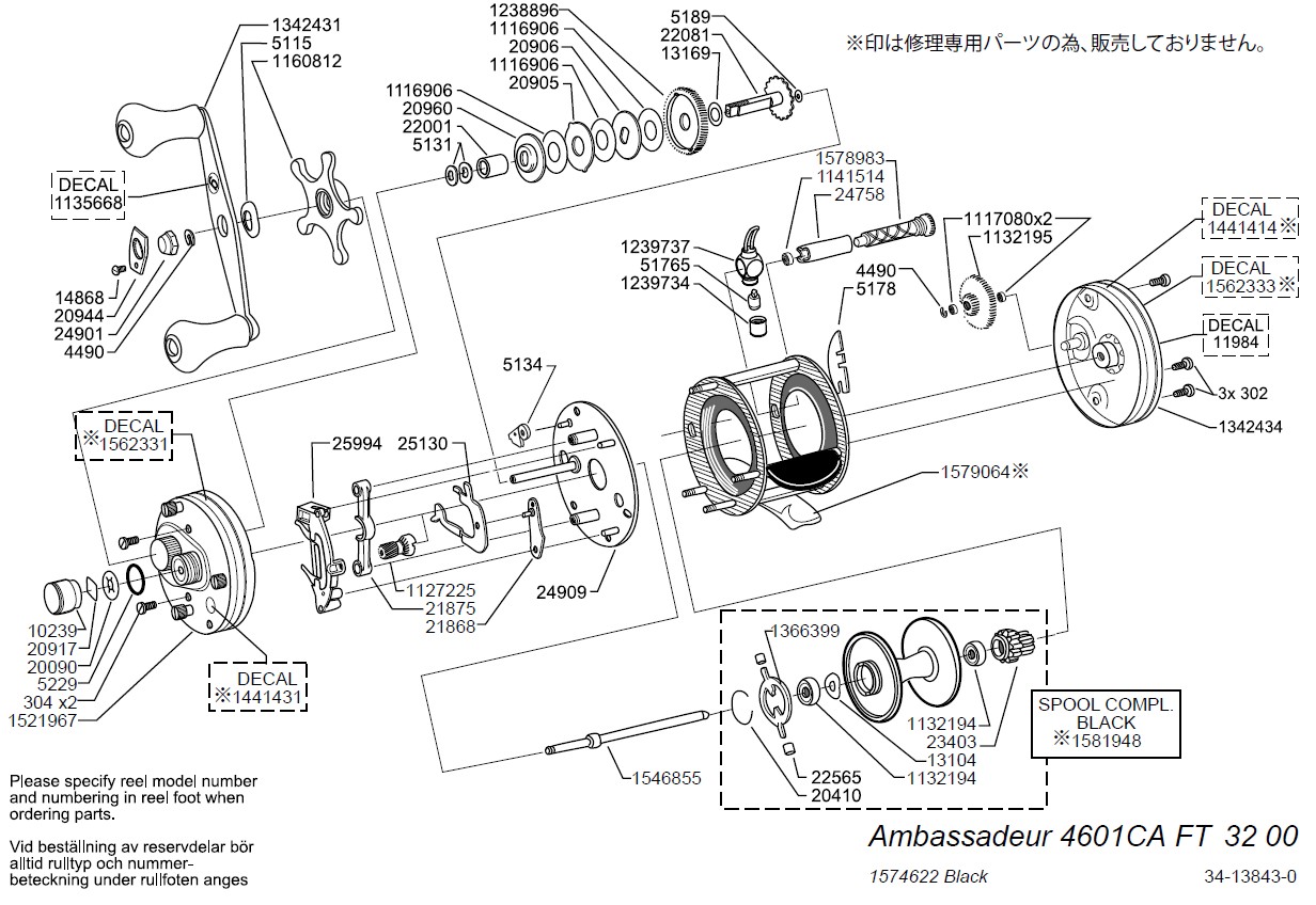 【アブ純正お取り寄せパーツ:納期1ヶ月】Ambassadeur 4601CA Factory Tuned BLack 製品コード:1574622