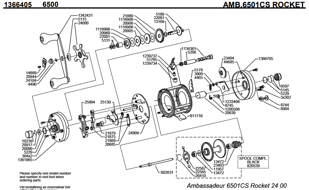 【アブ純正お取り寄せパーツ:納期1ヶ月】Ambassadeur 6501CS ROCKET 製品コード:1366405
