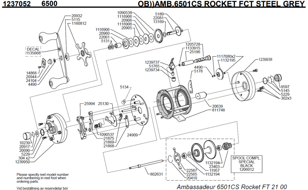 【アブ純正お取り寄せパーツ:納期1ヶ月】Ambassadeur 6501CS ROCKET FT 製品コード:1237052