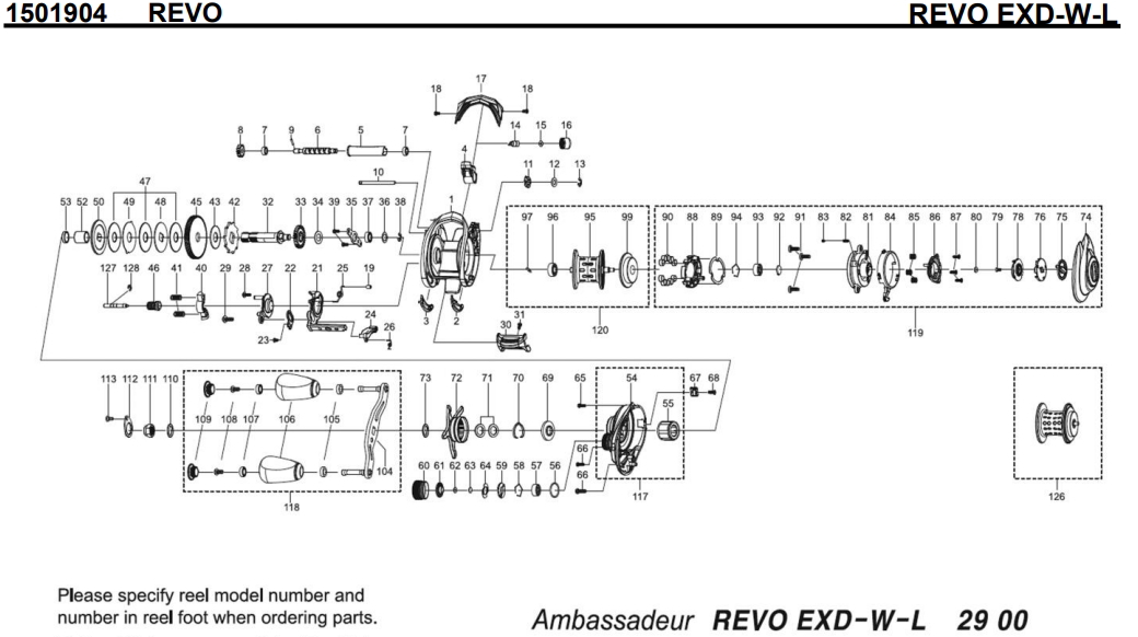【アブ純正お取り寄せパーツ:納期1ヶ月】20レボ EXD W-L 製品コード:1501904