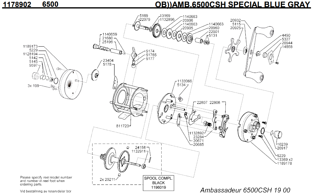 【アブ純正お取り寄せパーツ:納期1ヶ月】Ambassadeur 6500 CSH SPECIAL BLUE GRAY 製品コード:1178902