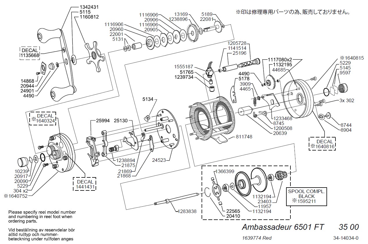 【アブ純正お取り寄せパーツ:納期1ヶ月】Ambassadeur 6501 Factory Tuned Red 製品コード:1639774