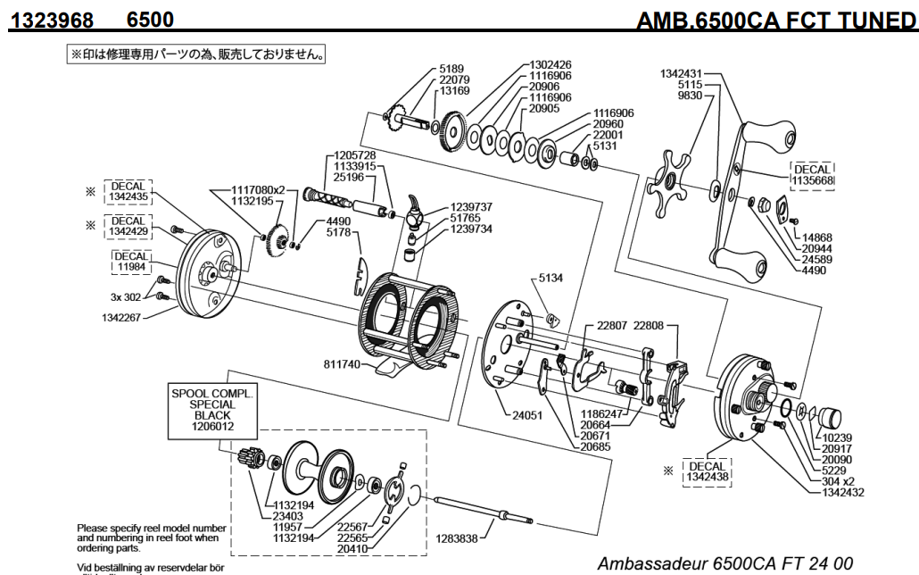 【アブ純正お取り寄せパーツ:納期1ヶ月】Ambassadeur 6500CA Factory Tuned 製品コード:1323968