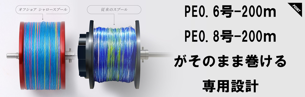 PE0.6号、0.8号200mが下巻きなしにベストセッティングで巻けるスーパーシャロースプール。