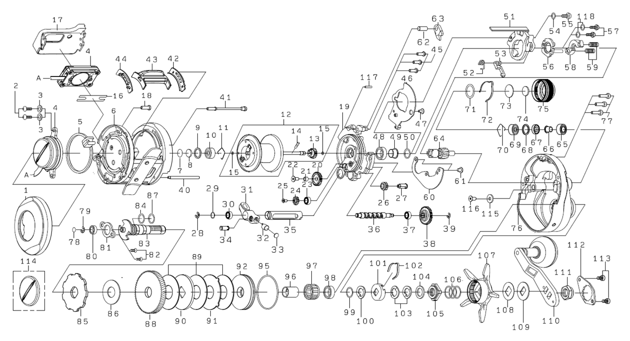 | リール部品展開図 |