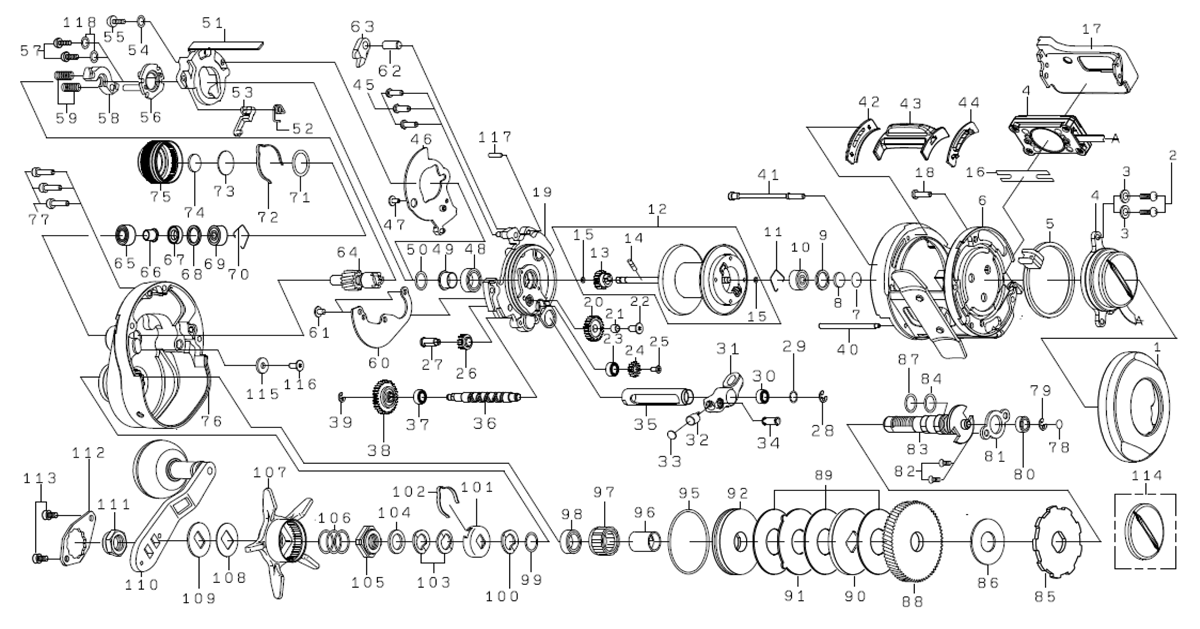 ※パーツリストのページは順次増やしていく予定ですが、まだリストが掲載されていないリールの部品をご希望の場合は、下記オーダーフォームより手入力でご注文下さい。