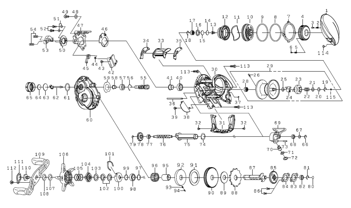 | リール部品展開図 |
